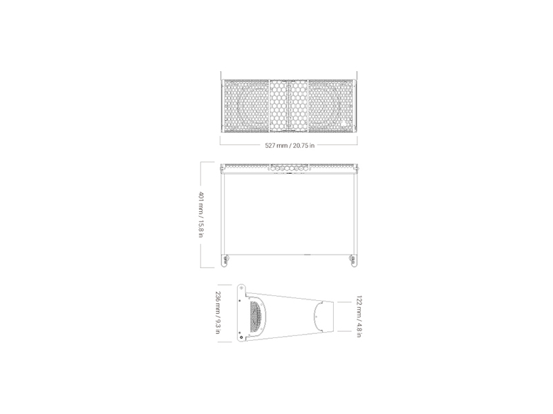 キャビネットには、マリングレードのバーチ合板に加え、航空機グレードのアルミニウムおよびスチールを採用。接続端子として、2系統のSpeakon™ NL4コネクターおよび2点式バリアストリップを装備しています。さらに、エンクロージャーの上下にはプレート&スクリュー方式のリギングシステムを備え、各種オプションアクセサリーを使用することで、多様な用途にシームレスに対応可能です。