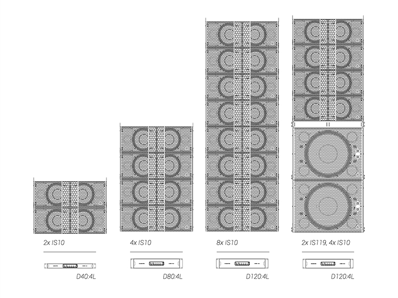IS10は、幅広い用途に対応する高い汎用性を備えたシステムです。60Hzまで対応するフルレンジ性能により、サブウーファーを必要としない用途にも適しています。また、10°の垂直指向角により、比較的少ない台数で劇場、アリーナ、スタジアムといった大規模空間を効率的にカバー可能です。主な用途として、ダンスクラブ、大規模会議室、現代的な教会施設などが挙げられます。